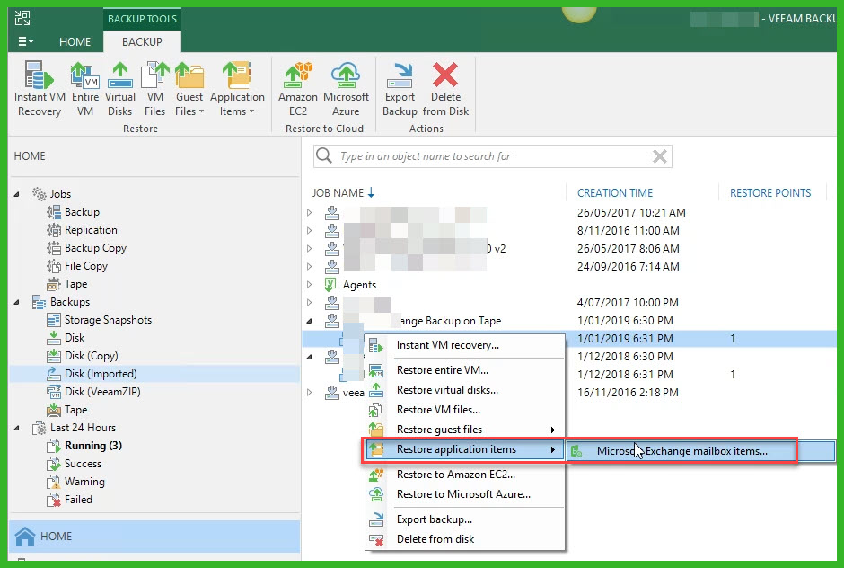 Select Microsoft Exchange mailbox items, then confirm the restore point and Veeam Explorer for Microsoft Exchange will then start.