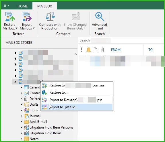 Now find the mailbox, right click and select restore to .pst file. And that’s it, just sit back and wait for the .pst file to be created.